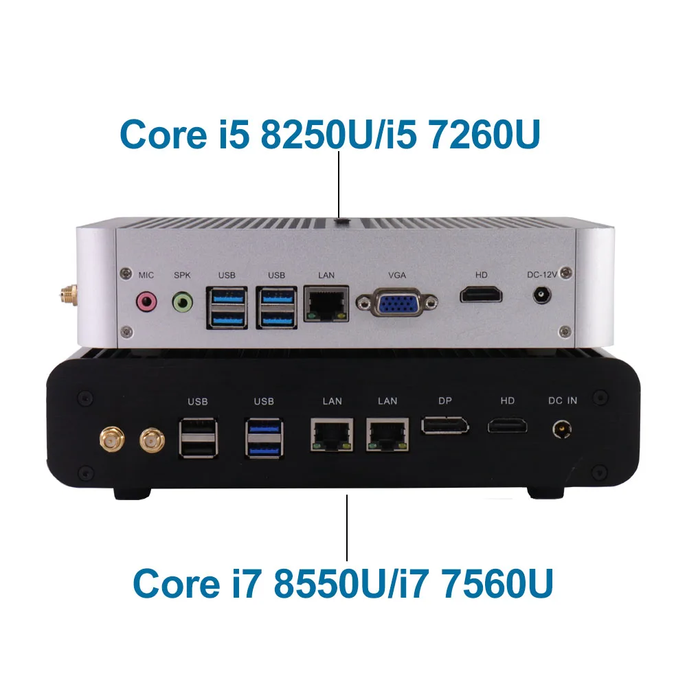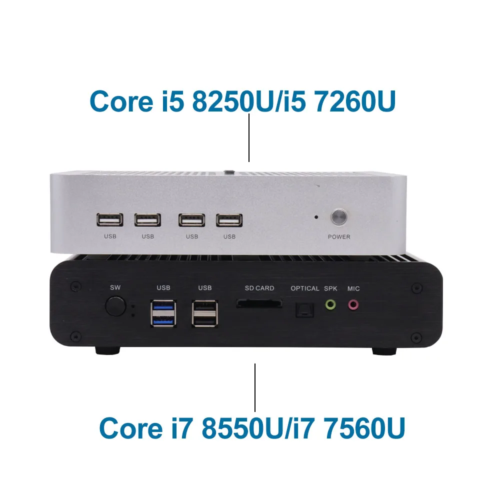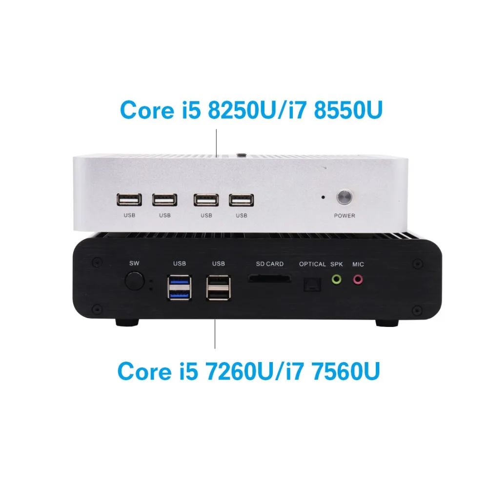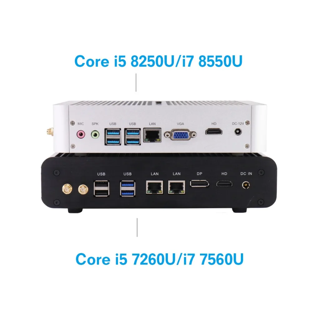 New KabyLake Intel Core i5 7260U/8250u i7 8565U 3.4/3.8GHz Fanless Mini PC Optical port 2*lan Iris Plus Graphics 640 DDR4