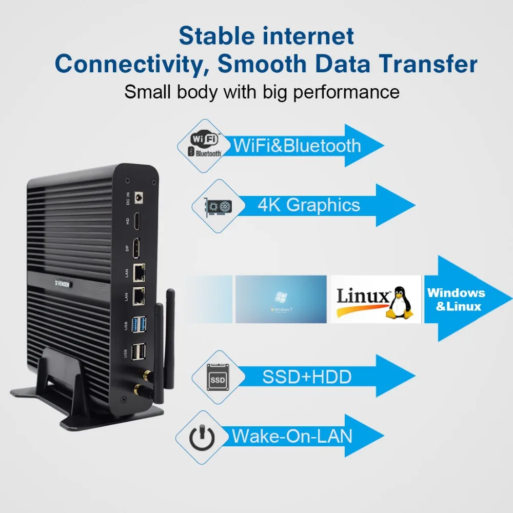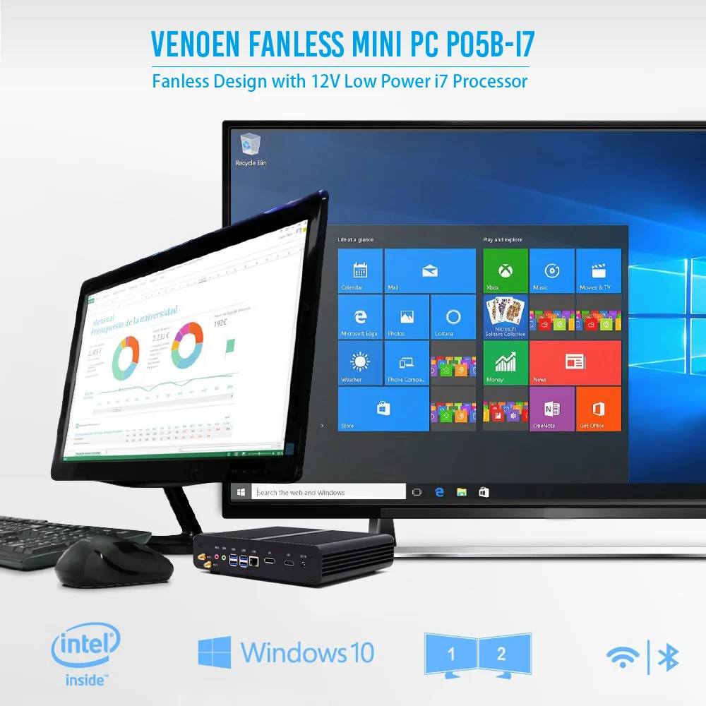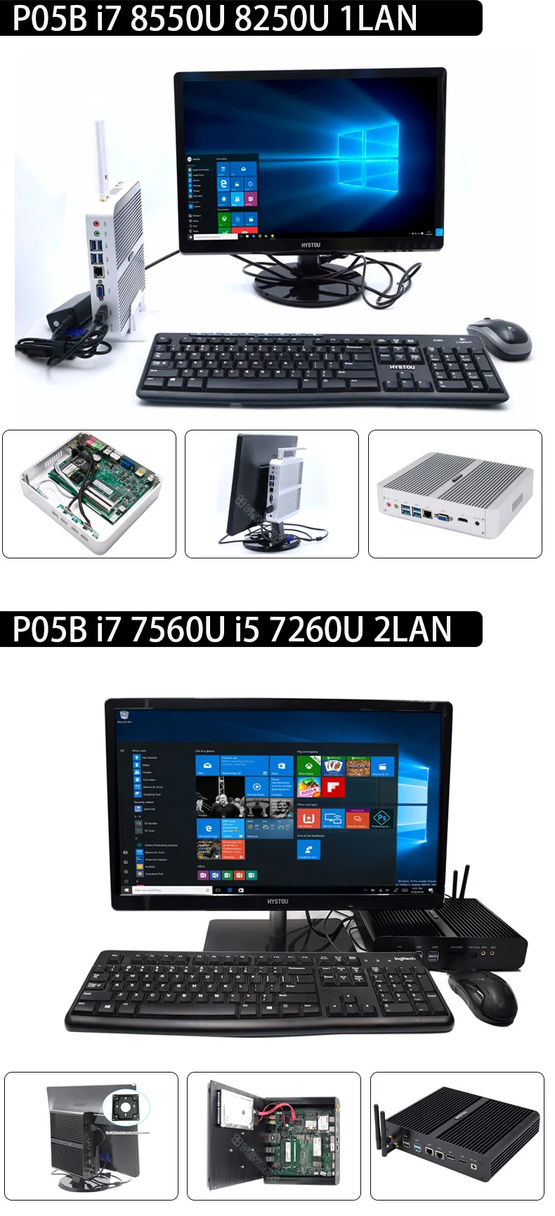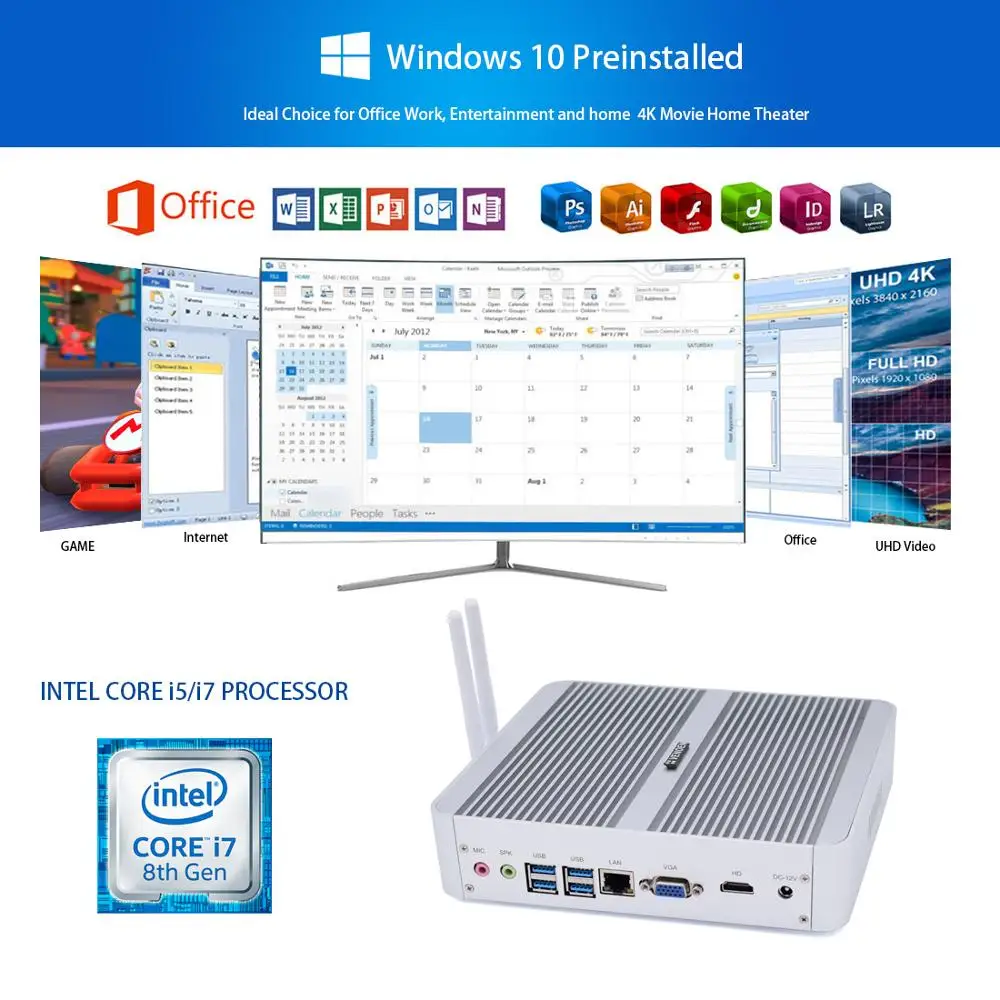 New KabyLake Intel Core i5 7260U/8250u i7 8565U 3.4/3.8GHz Fanless Mini PC Optical port 2*lan Iris Plus Graphics 640 DDR4