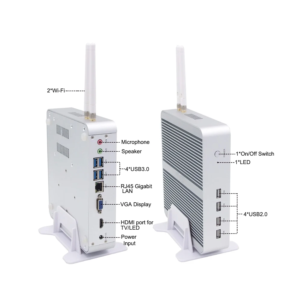 - Fanless system without cooling fan and slim design 208*180*45MM.