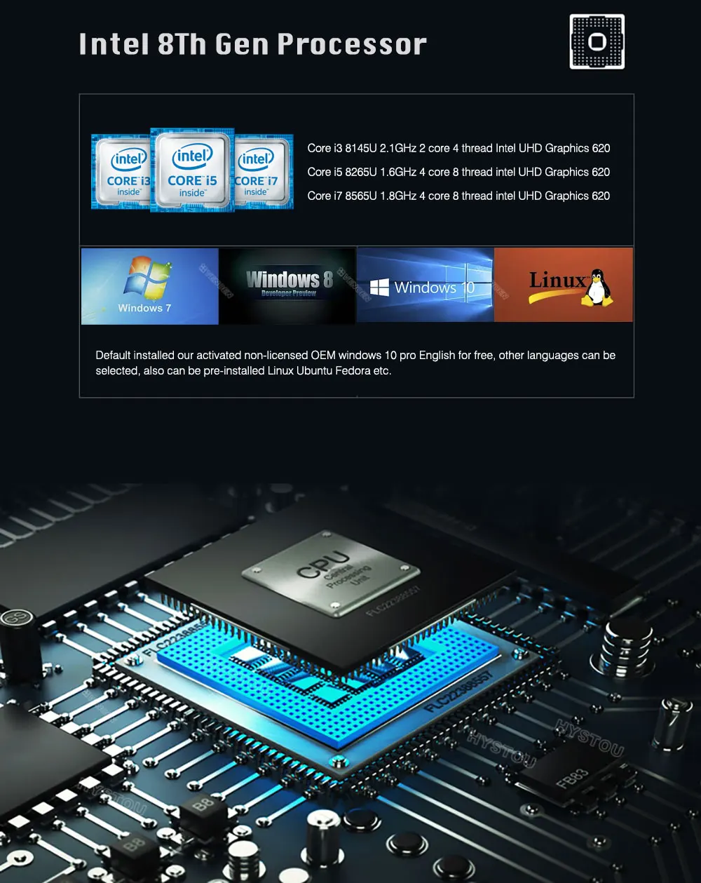 | Desktop tiny 8th Intel Core mini pc i5 8265U 10210u i7 8565U 10510U DDR4 M.2 PCIE NVME SSD 4K UHD tv box Linux Windows10 |