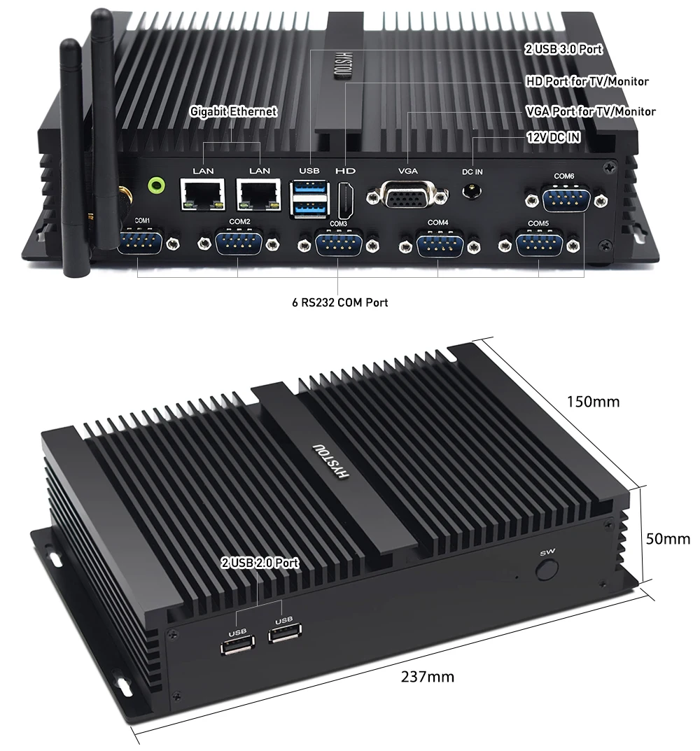 | Factory price HYSTOU intel Core i5 fanless industrial mini pc with 6 RS232 COM 4USB ports desktops pc computer with low price |
