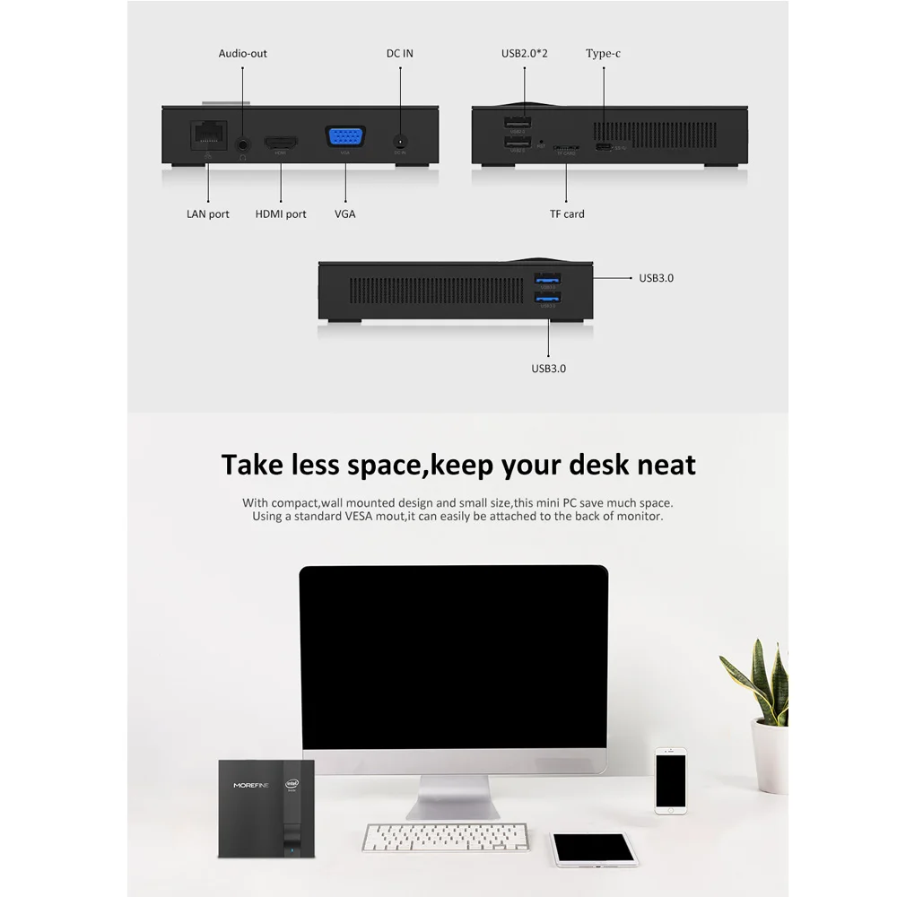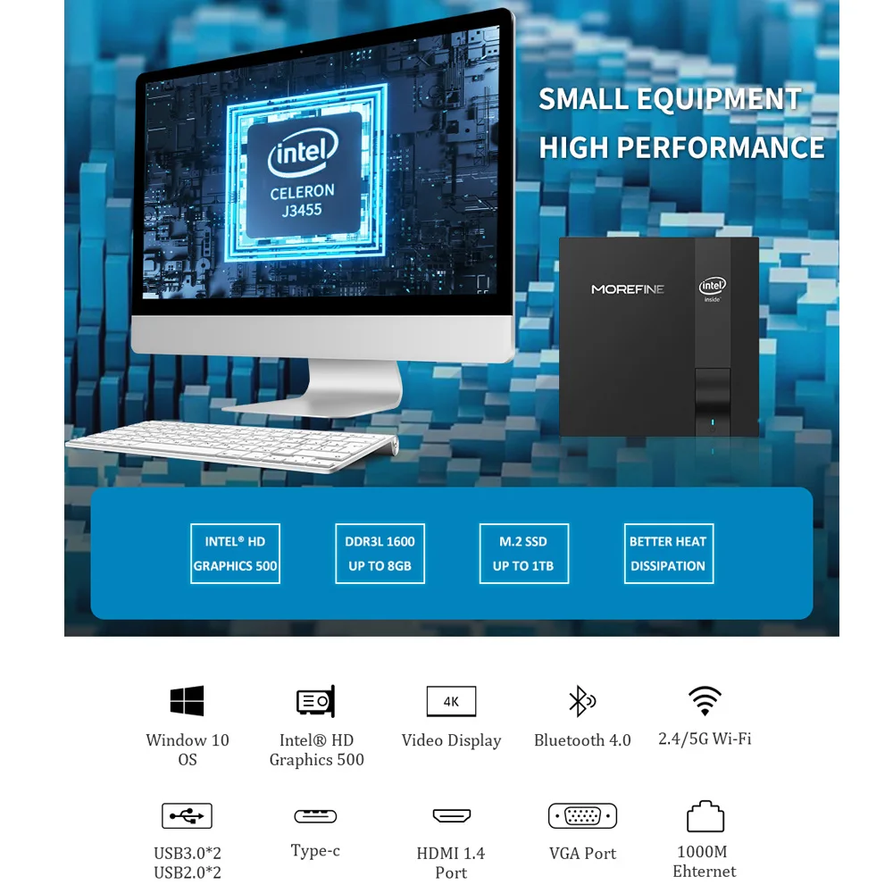 | M5 Genuine Windows 10 Mini PC Box Intel Celeron J3455 Apollo Lake Quad-Core 8GB RAM 128GB WiFi Bluetooth VGA Computer |