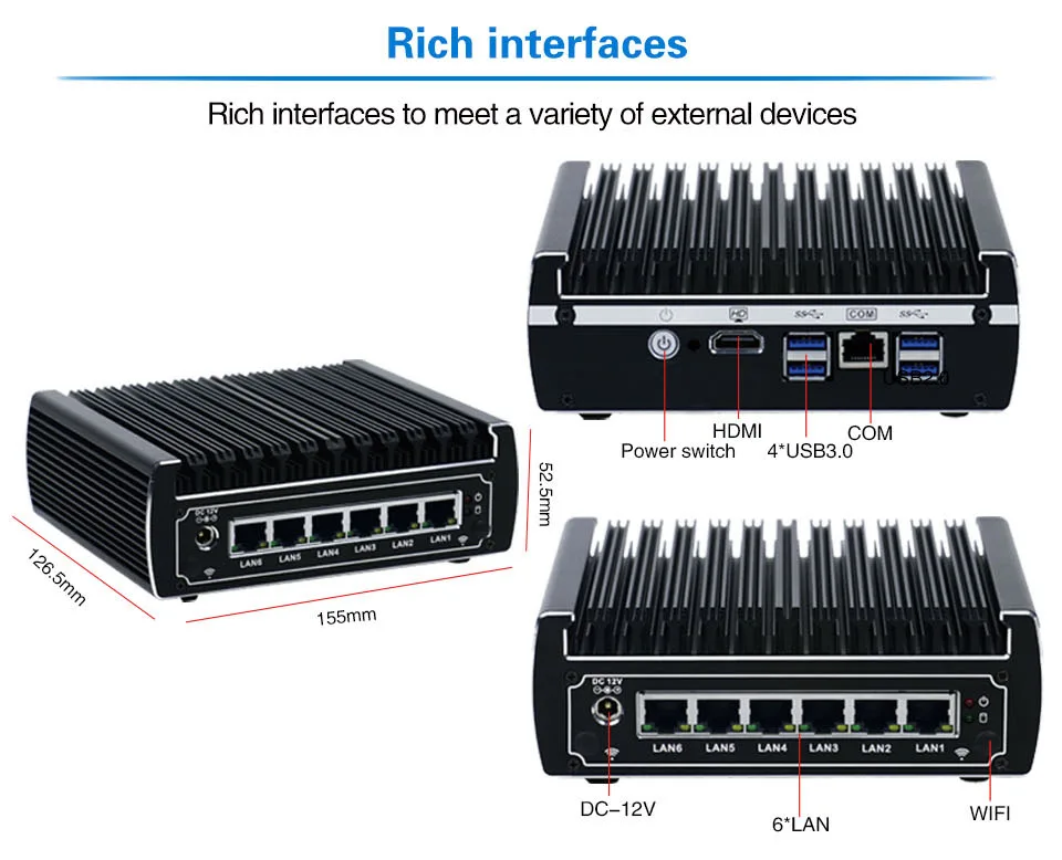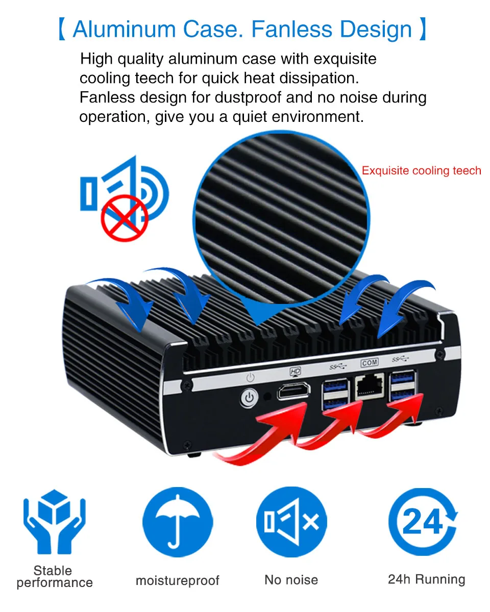 Firewall Mikrotik Pfsense VPN Network Security Appliance Router PC Intel Core I3 4160,[HUNSN SA16R],(6LAN/2USB/1COM/1VGA)