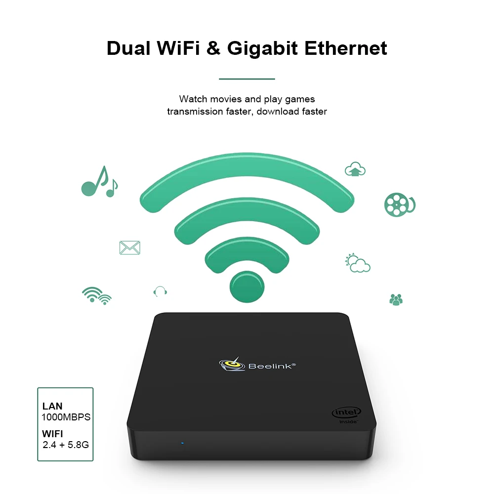 | Beelink MII-V Mini PC Intel N3350 4GB DDR4L 64GB Dual Display Windows10 Mini Pc Bluetooth 2.4G+5.8G Wifi 1000M 4K Media Player |