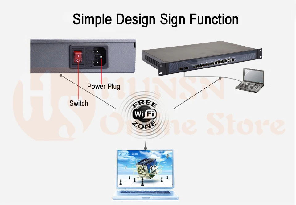 Packing List: HUNSN SA20R Firewall Appliance+ Power Cord+ Warranty Card