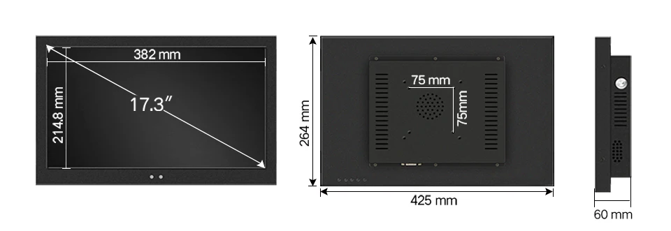 Brightness:250cd/m2 Contrast Ratio:1000:1Viewing Angle:Horizontal(left/right): 150°(75°/75°)Vertical(up/down): 150°(75°/75°)Response Time:30 (Typ.)(Tr+Td) (ms)Frame Rate:60Hz Color system:PAL/ NTSCInterface:1 x VGA + 1 x HDMI + 2 * COM (default 232 protocol interface) +1 x RJ45 + 4 * USB + 1 x audioPower:DC 12VPlug:AU,EU,USA,UK plug availableMenu Languages:English,,Francais,Italiano,Deutsch,Espanol,Russian,Traditional Chinese, Simplified Chinese,etcVISA Hole distance:75*75mmDelivery TimeSample:1~5 working days.10~100pcs:2~7 working days.More than 100pcs :5~15 working days★★★ SPECIAL REMINDER ★★★