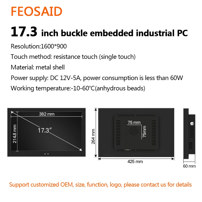 | Feosaid 17.3 inch Industrial touch computer Framed Rack Mount core I5 I7 J1900 with 4G RAM 32GB SDD WiFi com for All in one PC |