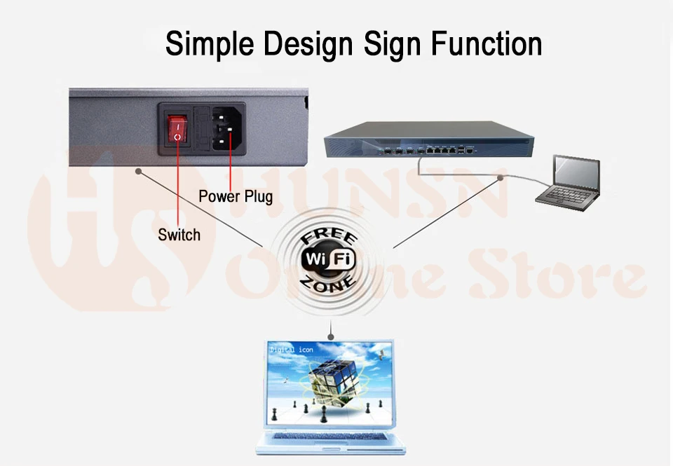 Packing List: HUNSN SA21R Firewall Appliance+ Power Cord+ Warranty Card