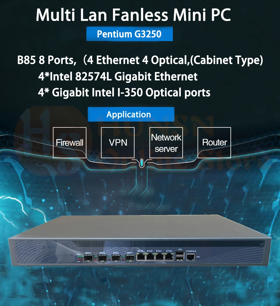 Firewall Mikrotik Pfsense VPN Network Security Appliance Router PC Intel Pentium G3250,[HUNSN SA16R],(6LAN/2USB/1COM/1VGA)