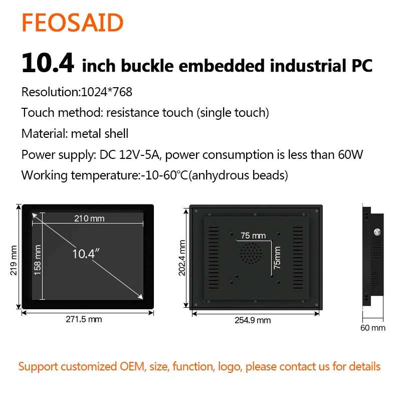 LOGO/Product Model/Case Material/Add Touch Function/Add Built-in Speaker/Add Remote Control Function/Base Style/Screen Size/Interface Type/Power Type/Installation Mode(Wall-hang/Embedded/Open-frame),etc.,can be customized for you(But need to meet the requirements of MOQ).If you have this demand,please contact us,we will provide you with timely and thoughtful service!10.4 inch Size