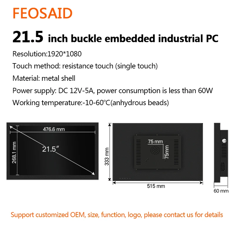 LOGO/Product Model/Case Material/Add Touch Function/Add Built-in Speaker/Add Remote Control Function/Base Style/Screen Size/Interface Type/Power Type/Installation Mode(Wall-hang/Embedded/Open-frame),etc.,can be customized for you(But need to meet the requirements of MOQ).If you have this demand,please contact us,we will provide you with timely and thoughtful service!21.5 inch Size