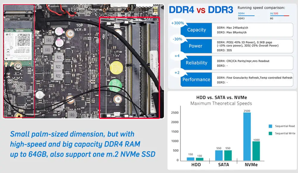 - RAM :Dual DDR4 SO-DIMM solt, Support up to 64GB