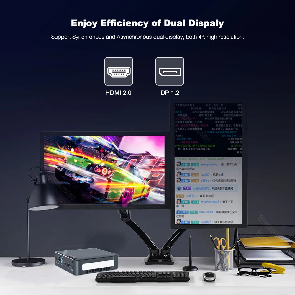 Mini PC Intel Celeron N4100 Windows10 Computer Quad-Core 8GB LPDDR4 128GB SSD 2.4G/5.0G WiFi Bluetooth 4.2 HDMI2.0 4K 60Hz USB-C