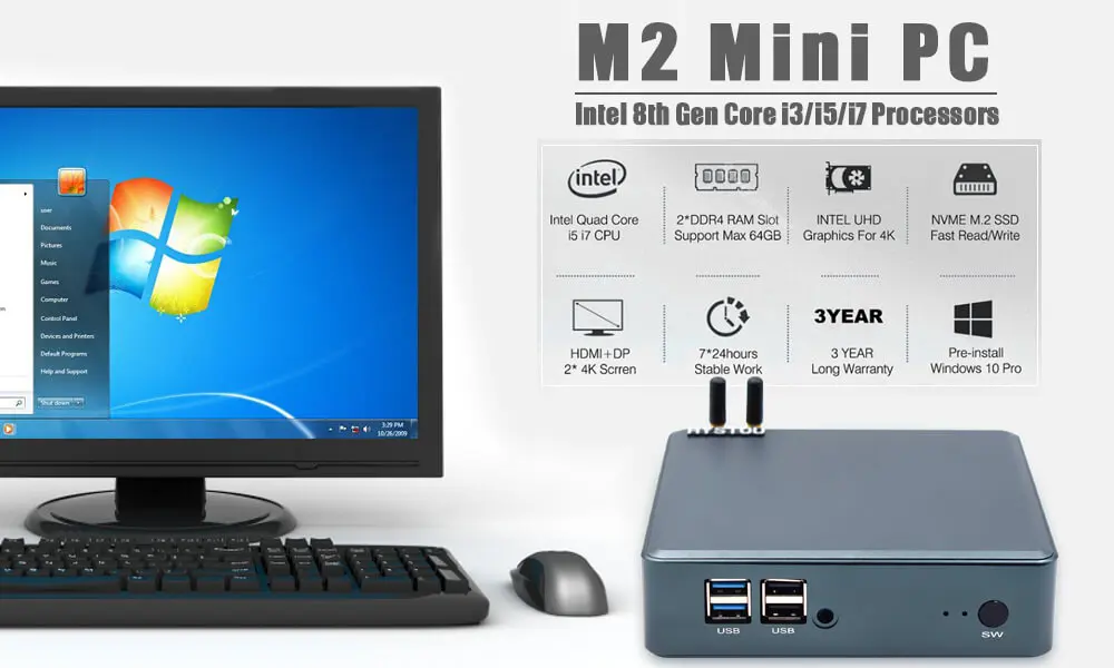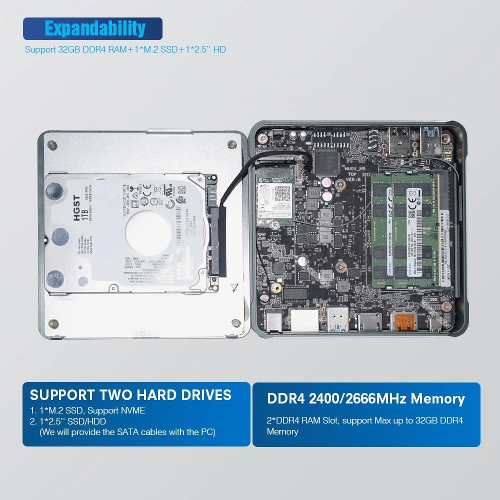 Intel 8th i3 i5 i7 mini gaming pc quad core dual DDR4 RAM NVME SSD thin client desktop Pentium 5405U DP HDMI multi-port computer