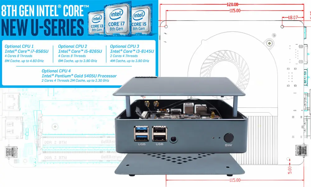 intel core i3 8145U,I5-8265U,I7 8565U Pentium 5405U is optional