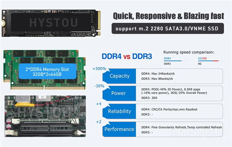 - 260 pin DDR4 SO-DIMMs,up to 64gb ram more powerful performance improve work efficiency and give you a smooth experience.