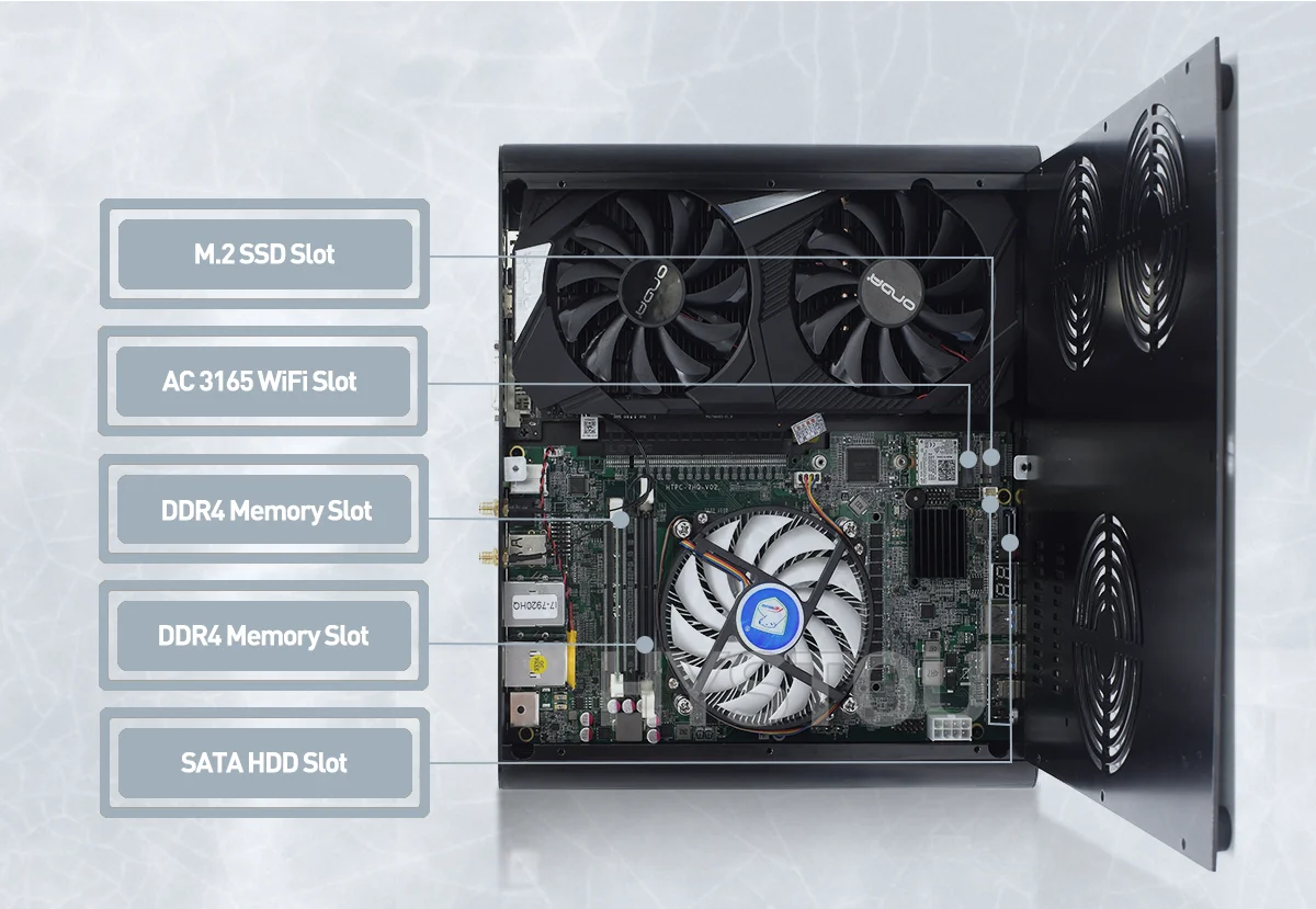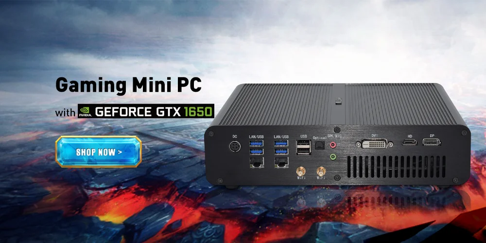 Buy Now On AliexpressHigh Speed Mini PC with FAN Intel Six Core i9 8950HK 12MB Cache Dedicated 4G GTX1650 DP HDMI 2*LAN Mini Computer HTPC