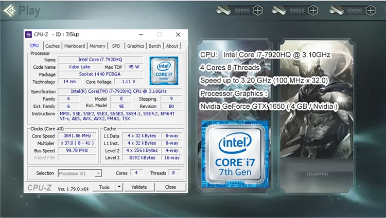 - Independent Graphics Processor Graphics NVIDIA GeForce GTX 1650 4GB+Intel® UHD Graphics 630