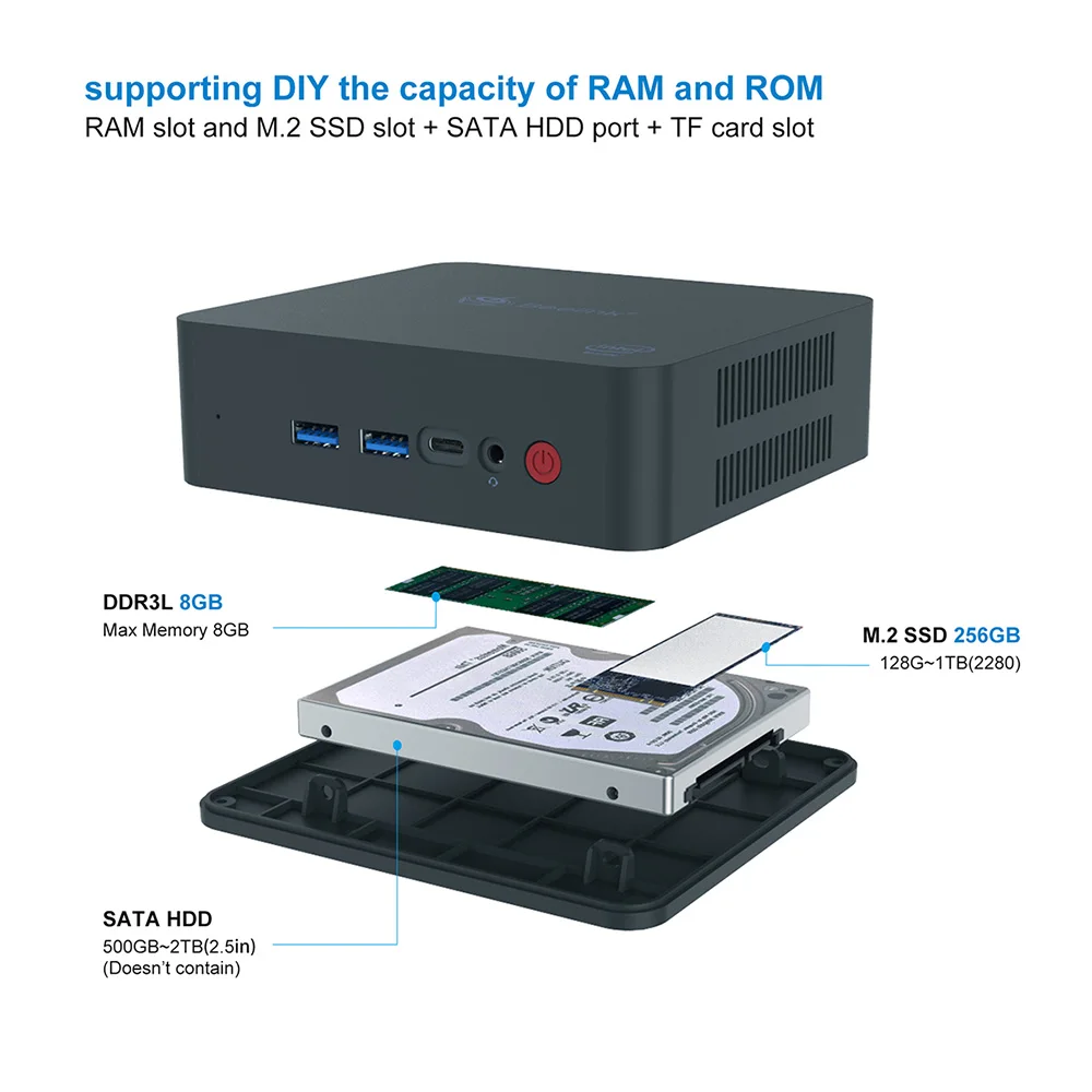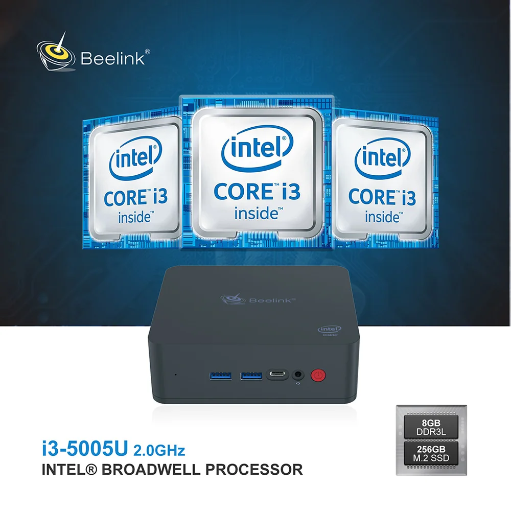 Beelink U55 Intel Broadwell i3-5005U Mini PC Windows 10 8GB DDR3L 128GB 256GB 512GB SSD Gaming PC Dual HD i3 Mini Computer