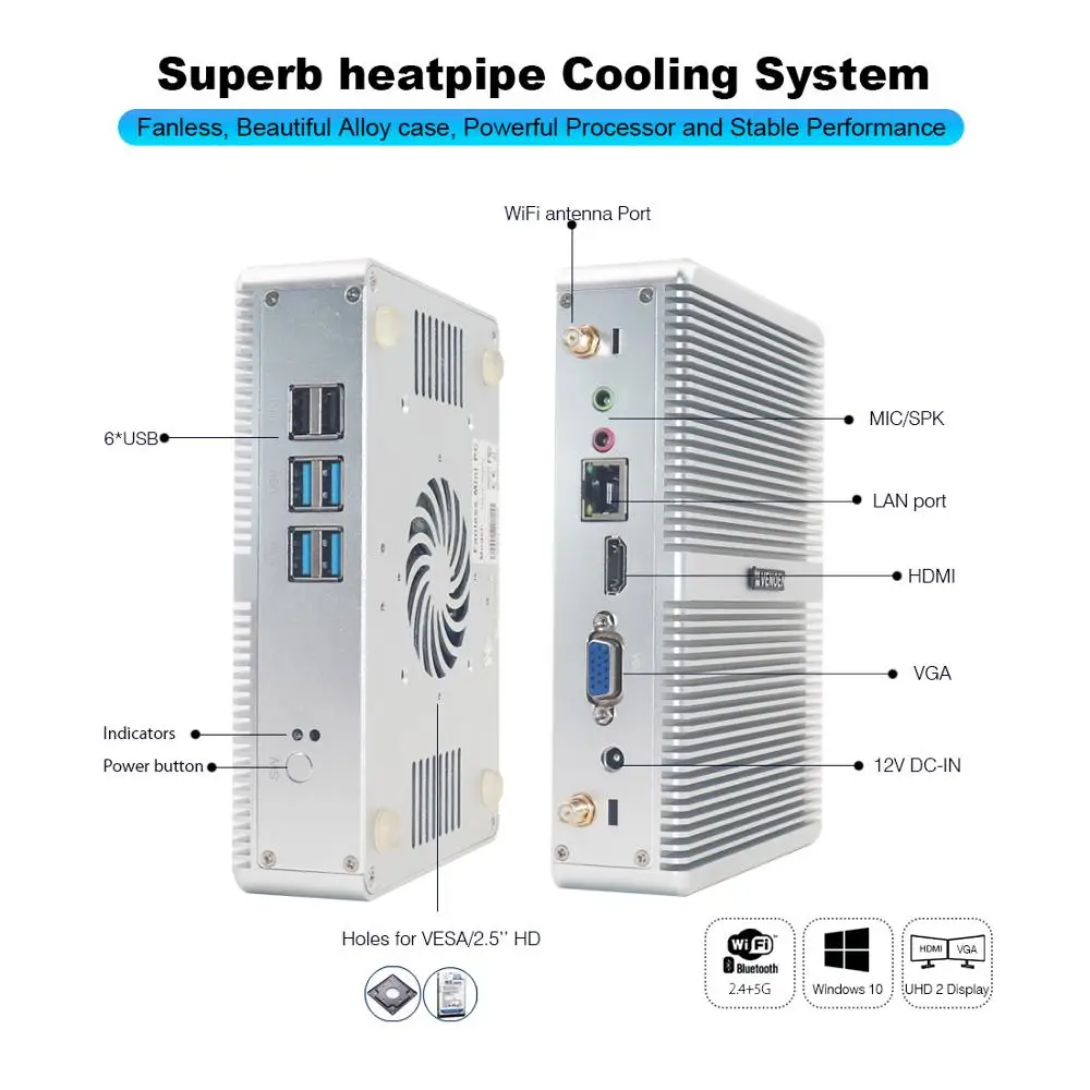 | Core i5 7200U i7 5500U HYSTOU Mini PC Windows 10 HDMI VGA dual display port mini HTPC computer Linux Celeron 4405 4K TV box pc |
