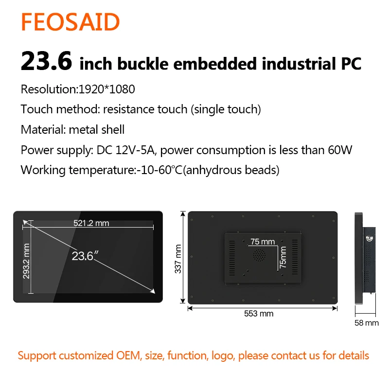 | Feosaid 23.6 Industrial tablet Capacitive touch Standard cabinet installation, embedded industrial computer, metal enclosure |