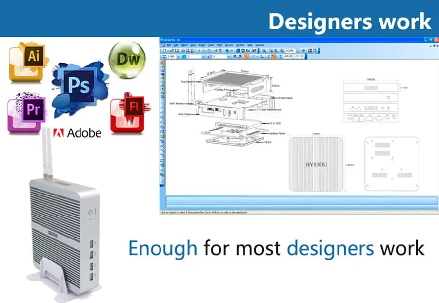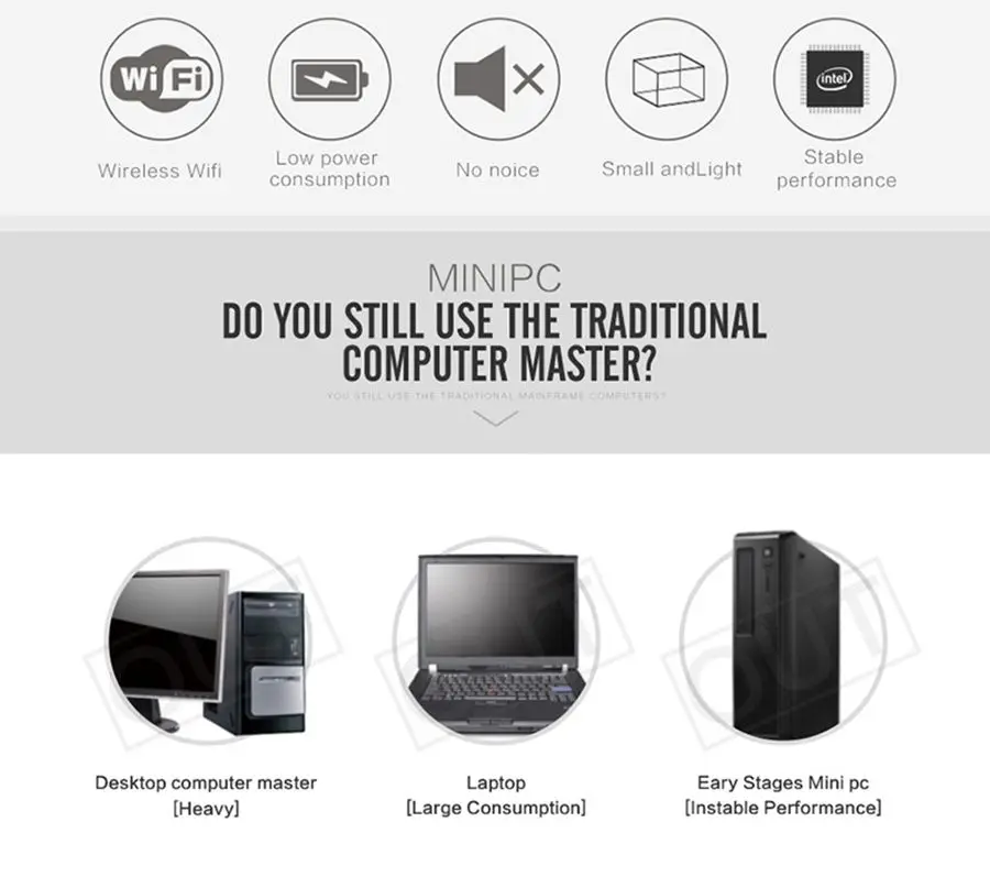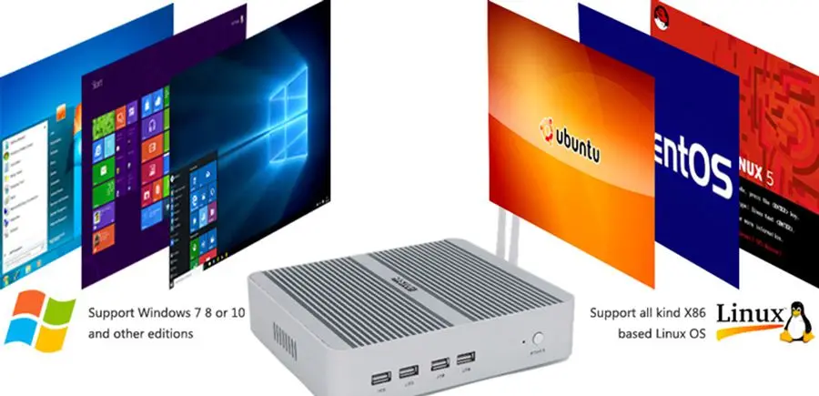 1. Low consumption,0.00dB, Fanless PC(Small Computer) is specially designed for working in dusty or noise free environment to avoid catastrophic failures. 2. High-end Intel Graphics HD 620, fight again dedicated Graphics! Support all online games, big 3D games, large-scale mapping software, blu-ray and 4K Ultra HD streams, full 1920*1080 HD resolution, 2*HDMI dual monitor display 3.Support 64 bits computing Turbo boost Hyper-Threading Virtualization technology etc, Can install 1pc 2.5'' SSD or HDD and 1pcs MSSD(5CMx3CM) together(welcome to contact our Pre-Sales if you need it) up to 512GB SSD or 1TB HDD large volume; 4.Newest Intel Core i5 7200U(i3 7100U)+Kaby Lake structure+ Intel Graphics 620+Fanless professional passive cooling by alloy case, be able to work 24hours per day; 5. Work with any brand monitors; 1*RJ45 Gigabit Lan Nic+1*VGA+1*HDMI+4*USB3.0+2*USB2.0 Suit for multiple application for example integrate with touch devices, industries, car repair shops, security, education, home as HTPC, business, fanancial and projects 6. Preinstall 300M Wi-Fi module and dual antennas as gifts for everyone; if you need bluetooth, please leave us a message, thanks. 7.TDP only 15W, very economical, saving a lot energy every year, low consumption but with a very amazing performance. 8. The power Plugs will be sent base on buyer's country. So no worry about it.