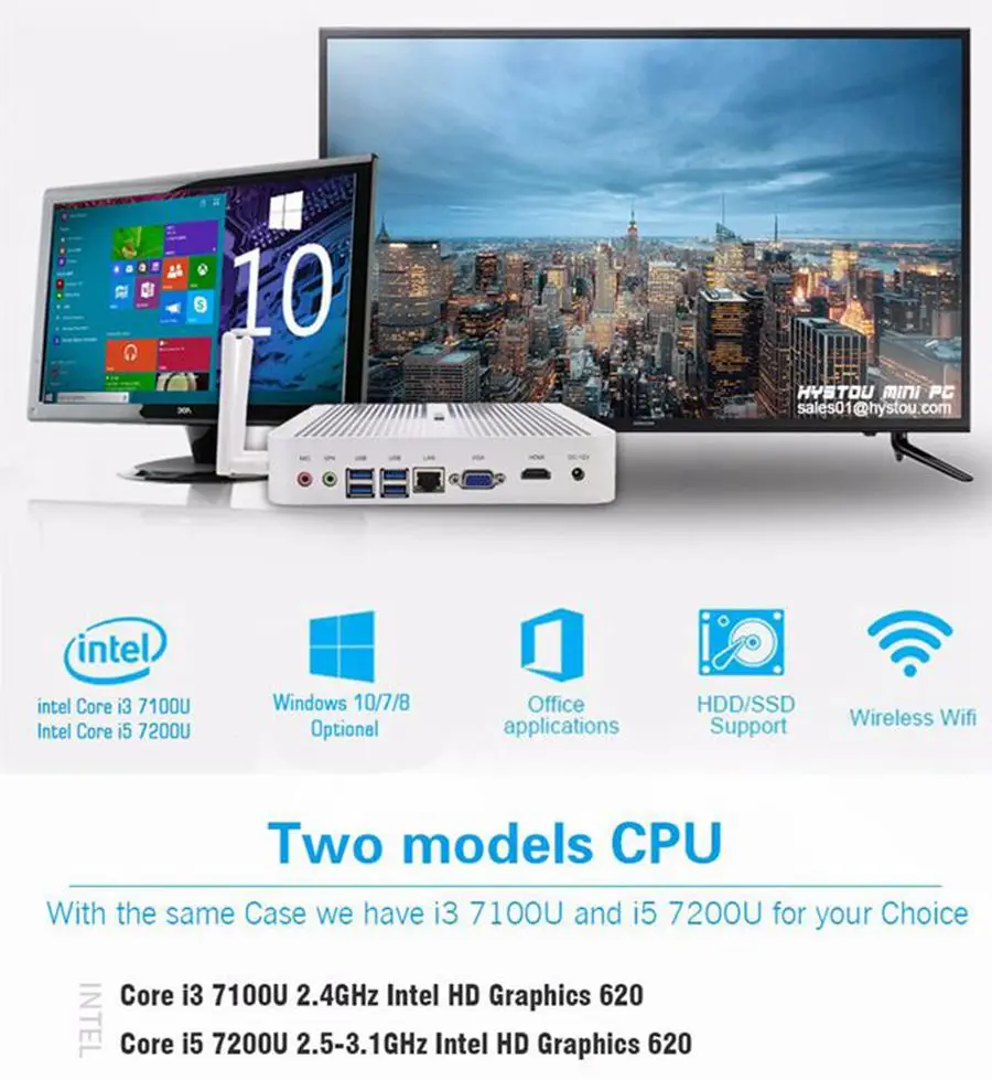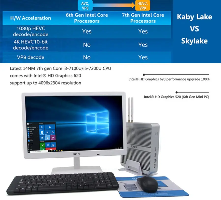 7th Gen Kaby Lake Intel Core i5 7267U i3 7167U Windows 10 Fanless Mini PC HD Graphics 620 4K Micro Desktop Computer HTPC Minipc