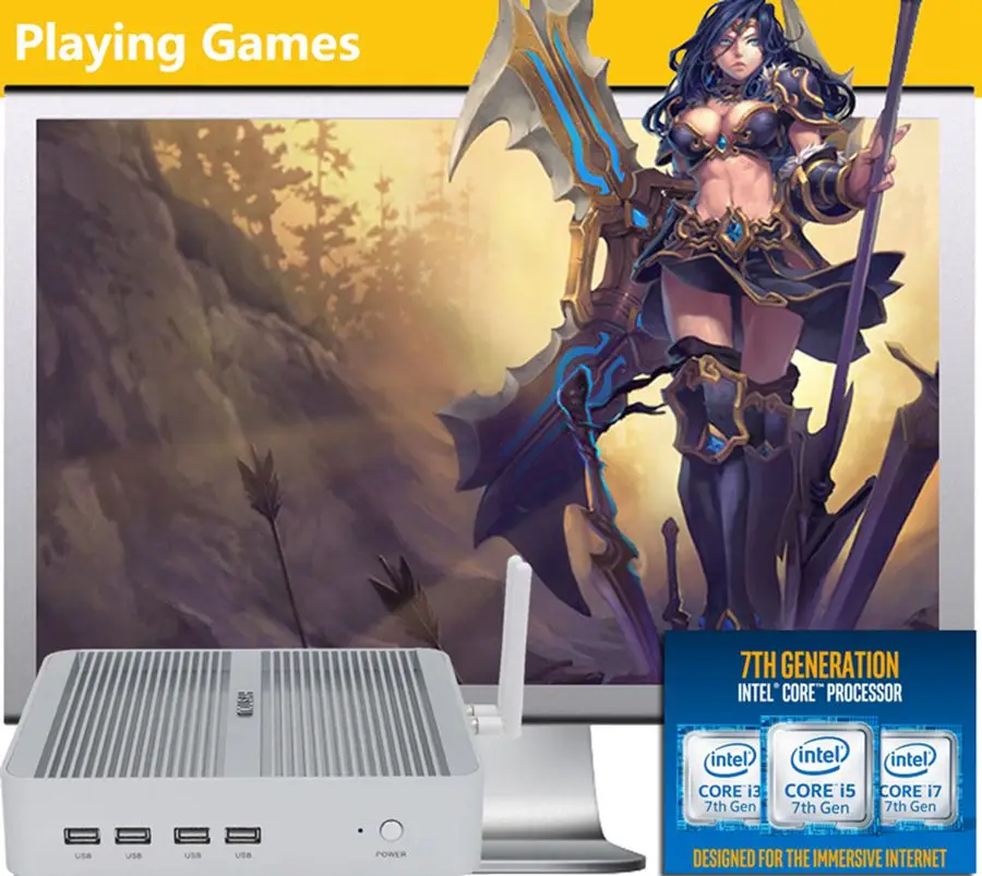 | Kaby Lake Intel Core i5 7267U i3 7167U Mini PC Windows 10 Fanless Gaming Computer Minipc Box |