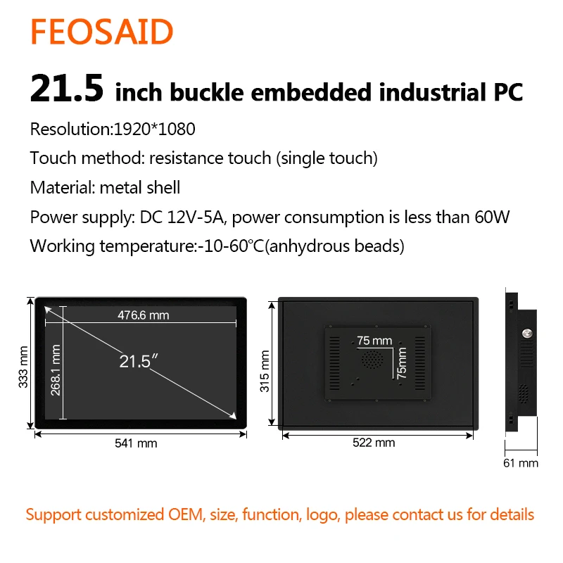 LOGO/Product Model/Case Material/Add Touch Function/Add Built-in Speaker/Add Remote Control Function/Base Style/Screen Size/Interface Type/Power Type/Installation Mode(Wall-hang/Embedded/Open-frame),etc.,can be customized for you(But need to meet the requirements of MOQ).If you have this demand,please contact us,we will provide you with timely and thoughtful service!21.5 inch Size