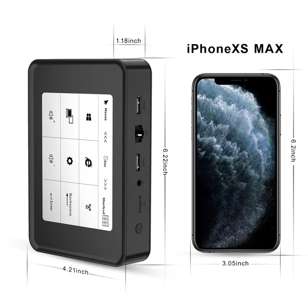 CPU:Intel Celeron Apollo Lake J3455 GPU:Intel HD Graphics RAM:6GB LPDDR3L ROM:SSD 128GB WiFi:Dual Band 2.4G/5G LAN:1000M Bluetooth: Version 4.0 OS:windows10 With Touch control board panel What is included in the box The F11 Mini PC A Power Adapter The User Manual A HDMI Cable